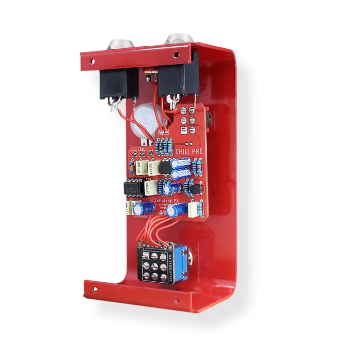 O Chili Pre trás apenas o circuito do clássico preamp, permitindo desligá-lo (com operação true bypass), além de ter o sistema de alimentação convertido para o padrão 9v (sendo convertido para +14/-13v internamente, como no original) e toda a riqueza de cor e o enorme ganho oferecido pelo preamp do CE-1 aos seus pés, indo de um clean boost/tone enhancer até um drive low gain.