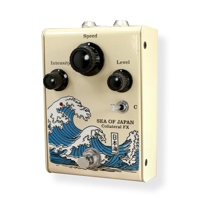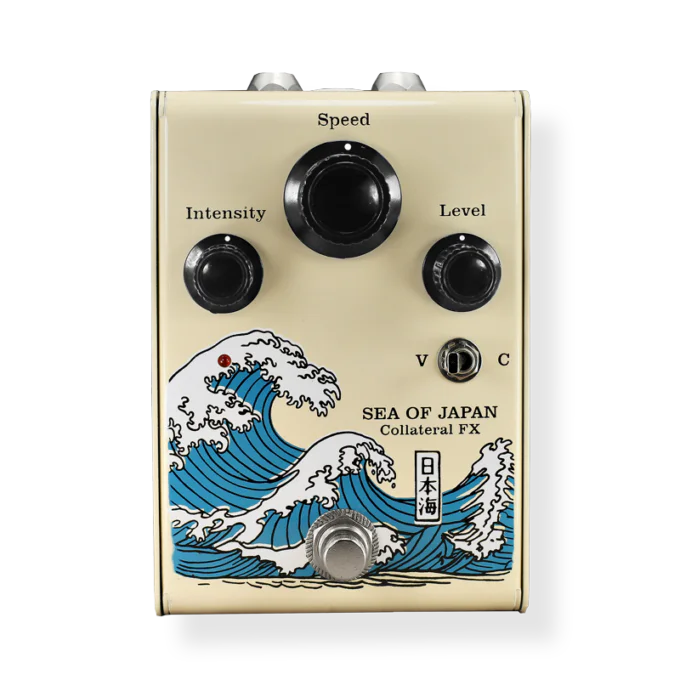 O Sea of Japan, por sua vez, é uma reprodução fiél do Vibe consagrado por Jimi Hendrix, Robin Trower, Mike McCready e tantos outros guitarristas, se valendo de uma lâmpada (que, vale dizer, tem uma vida útil de 10000 horas e provavelmente vai durar gerações) e um sistema de alimentação modernizado.O controle de depth determina a profundidade do efeito, alterando o “throb”, o desenho do pulso sonoro. O controle de Speed atua sobre a velocidade do efeito (que também atua sobre a profundidade, quanto mais rápido, mas intenso o som se torna, e quanto mais lento, mais sutil), indo desde um quase-phaser até sons que remetem à um Ring Modulator – o LFO do circuito foi levemente modificado para chegar em velocidades menores e maiores que o Univibe original, oferecendo grande flexibilidade sonora.
