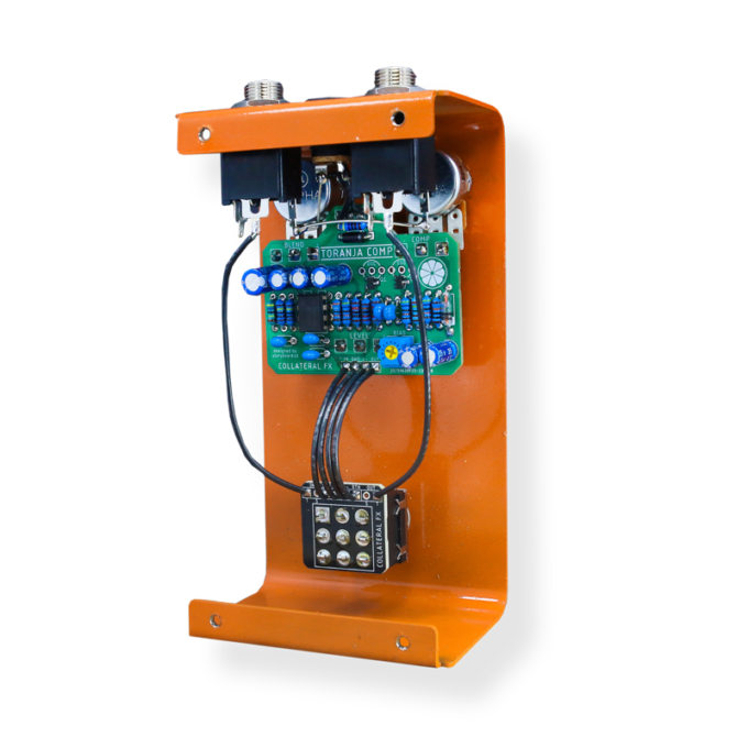 O Toranja compressor tem suas origens no raríssimo Dan Armstrong Orange Squeezer – que tem como uma de suas características, preservar as frequências altas de seu instrumento, soando extremamente orgânico e com baixíssimo nível de ruído. Seu controle de blend permite que seu sinal limpo seja mixado ao sinal comprimido, mantendo o timbre de seu instrumento e soando incrível em guitarras (tanto com single coils e humbuckers), violões, baixos e mesmo como efeito para voz.